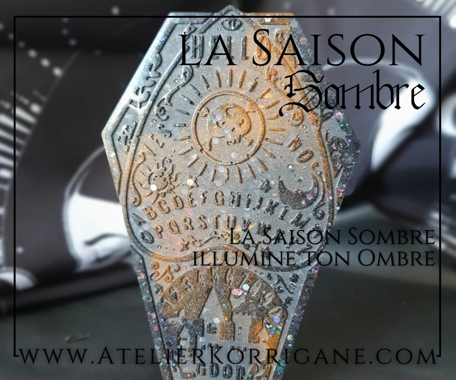 Une boite avec 3 étagère à disposer à la verticale ou à l'horizontale. Son couvercle est une planche Ouija.