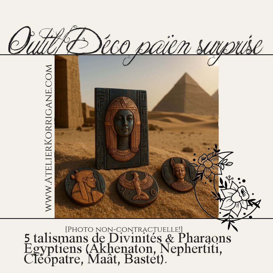 ・Un outil de pratique : 5 talismans de Divinités & Pharaons Egyptiens (Akhenaton, Nephertiti, Cléopatre, Maât, Bastet).