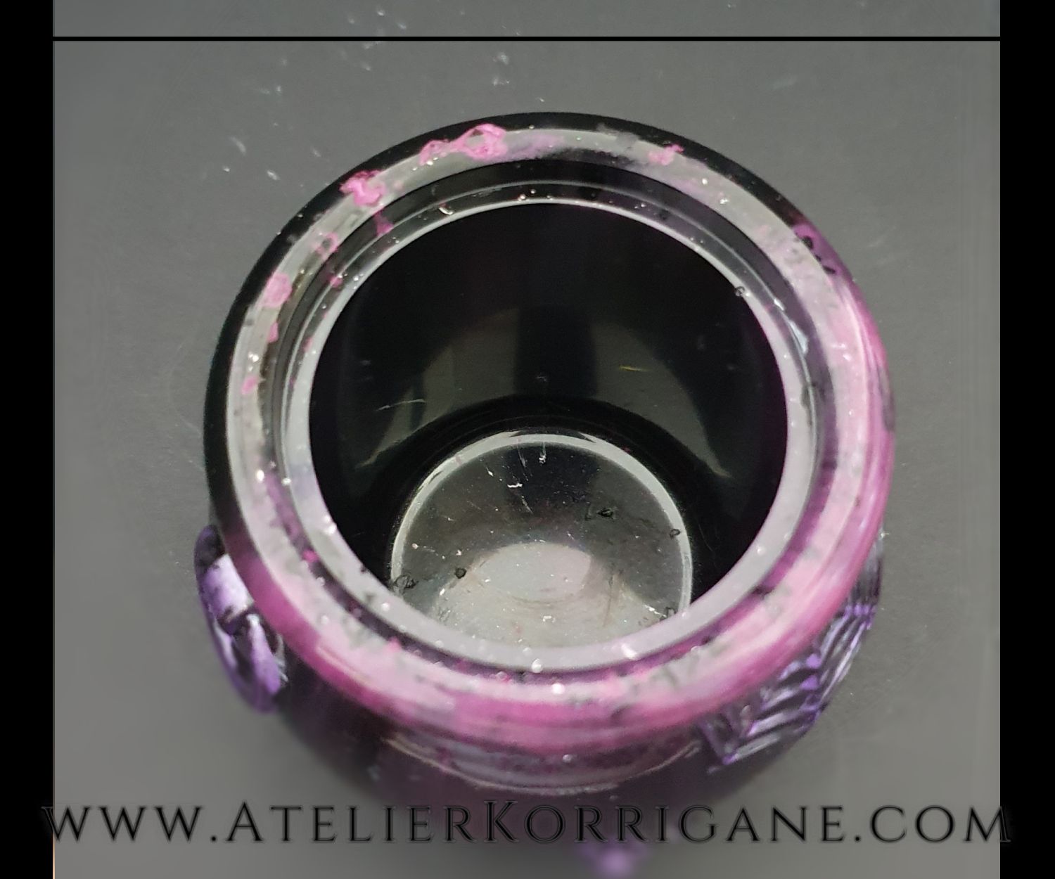 Avec ses fantômes, ses citrouilles violettes, ce Chaudron noir fera un joli pot pour vos trésors rituéliques.
