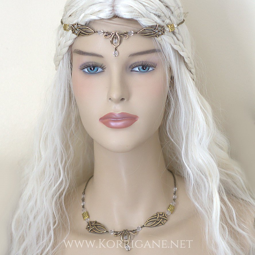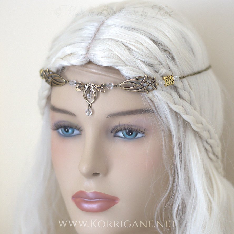- En Diadème/Tiare, c’est-à-dire positionné sur le front (fermeture et chaine sous les cheveux).