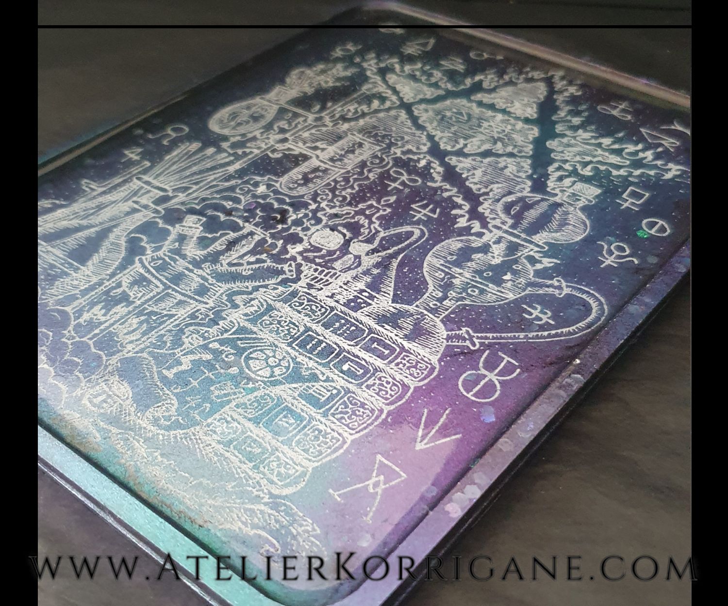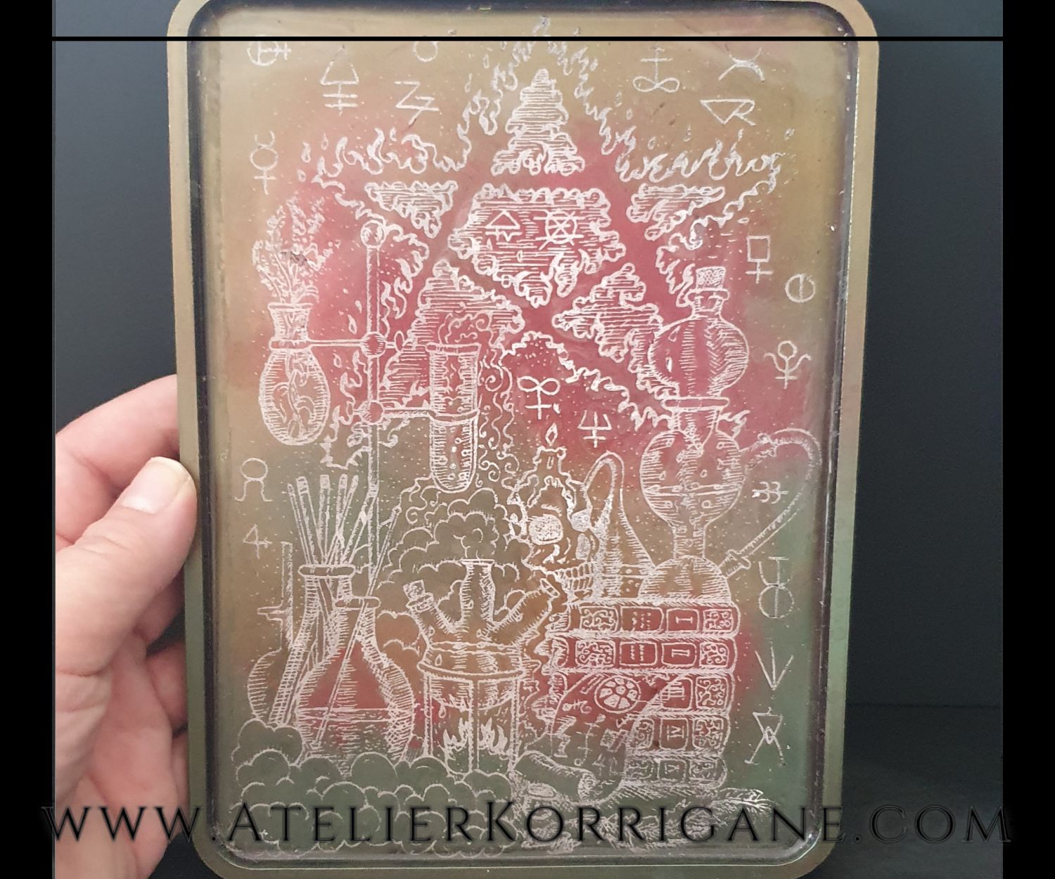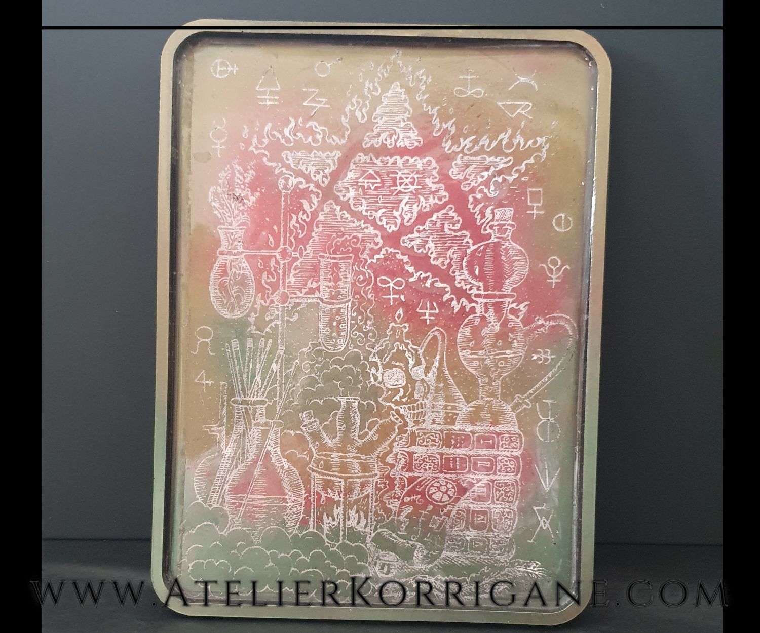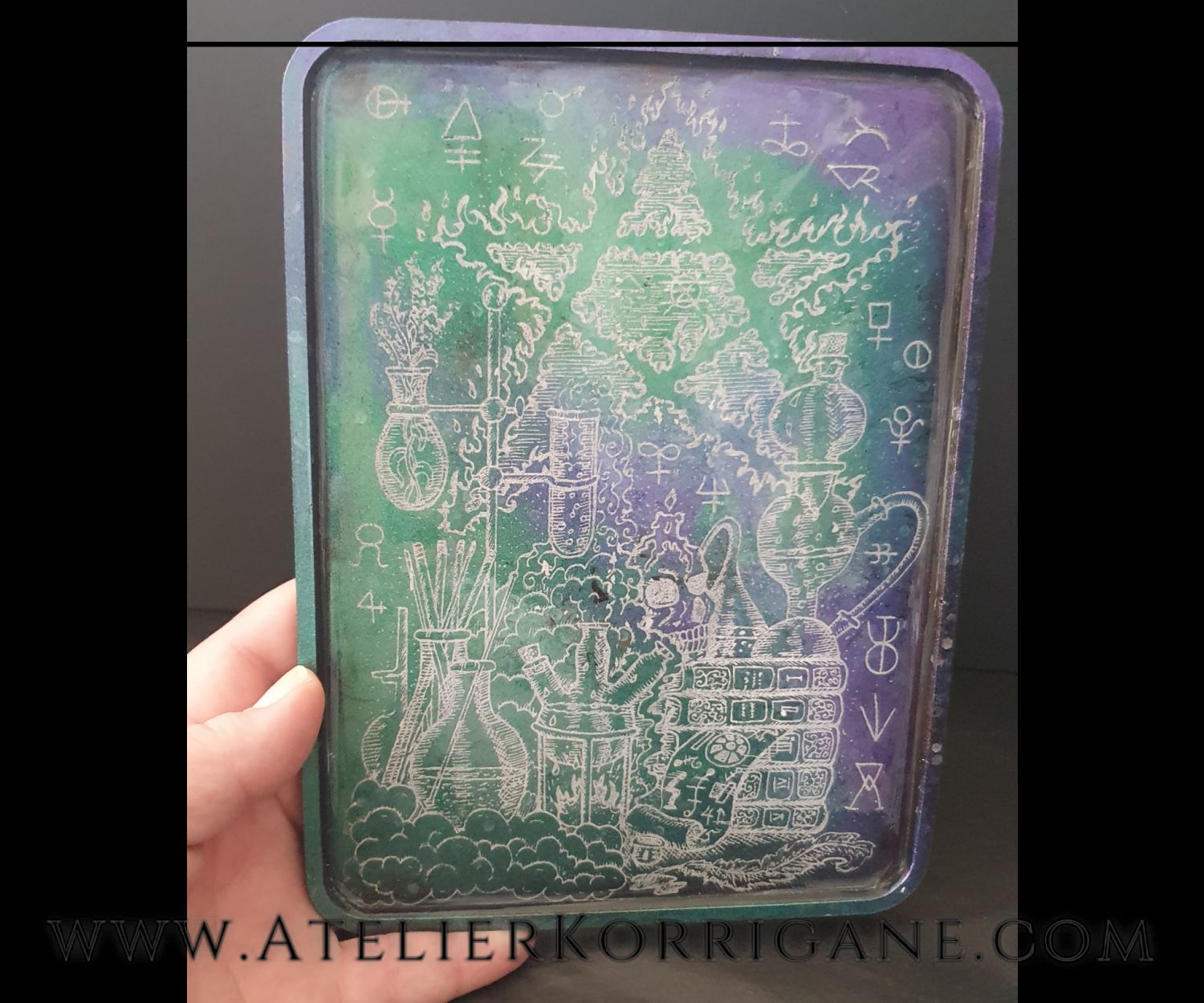 Sur le thème de l'Herboristerie, ce plateau, orné d'un pentagramme, servira pour vos rituels.